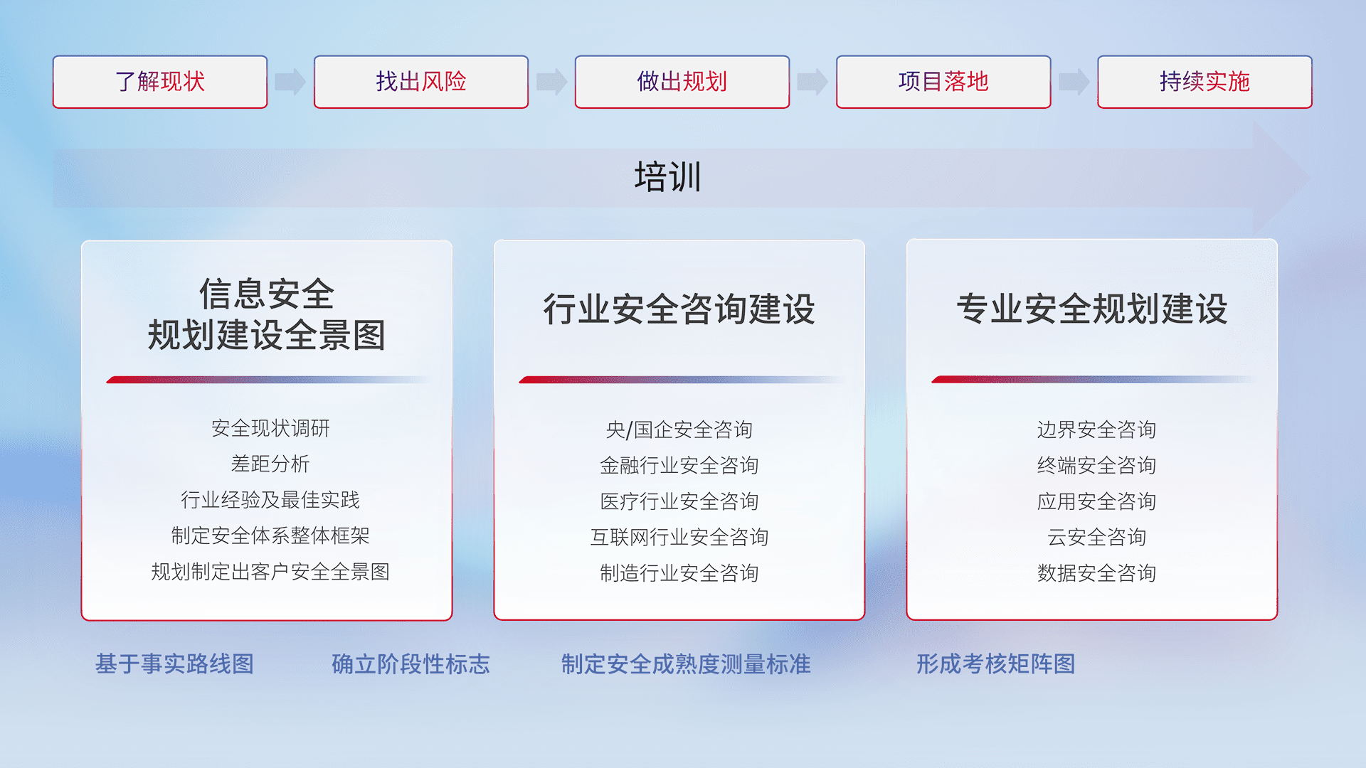 针对客户行业特性,,,将宏观的安全战略和需求,,,通过专业的交付服务,,,实现项目落地,,,为客户提供标准规范的集成交付服务。。