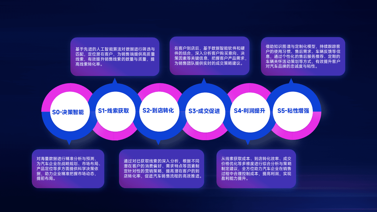 通过拓宽潜在客户来源、、优化线索分配并提高到店转化率,,,以增强销售效率。。。。同时,,利用线索数据不断优化分析模型,,,,有效提升转化率,,,,扩大营销影响力。。。。